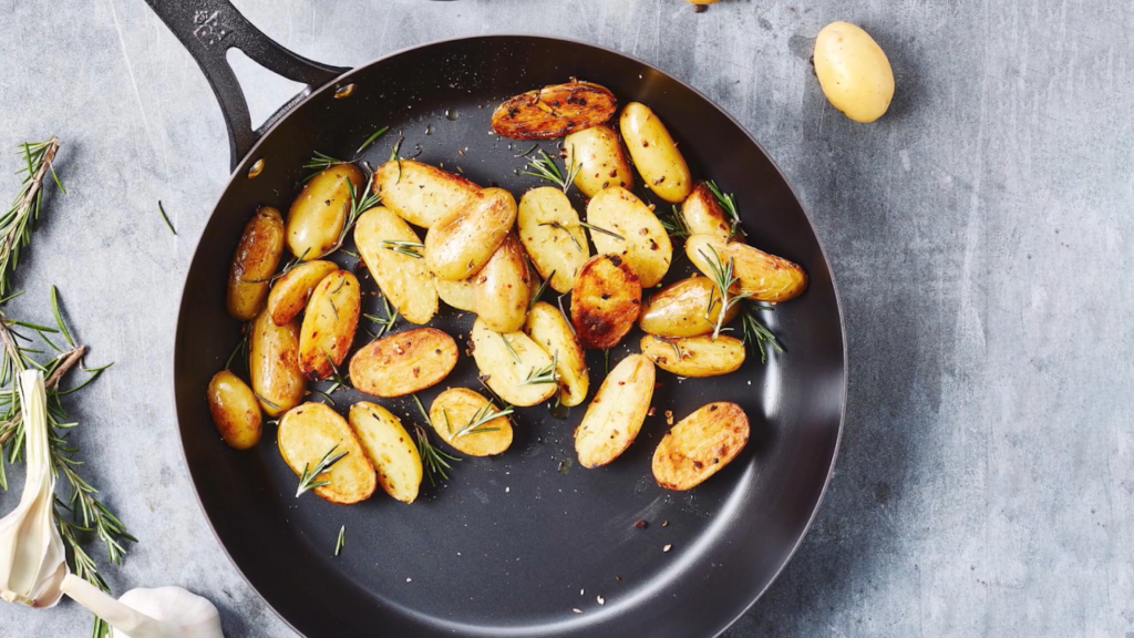 The handles are very comfortable, making it simple to grip throughout cooking, even though they don’t stay cool. All types of stoves, including induction stoves, may be used with this cookware. It’s also microwave safe.